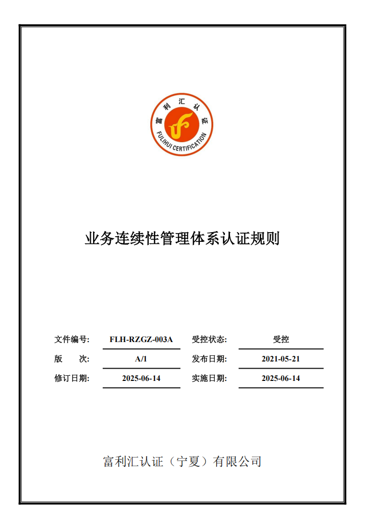 认证规则:LH-RZGZ-003A 业务连续性管理体系认证规则 点击红色字打开查看(全文)