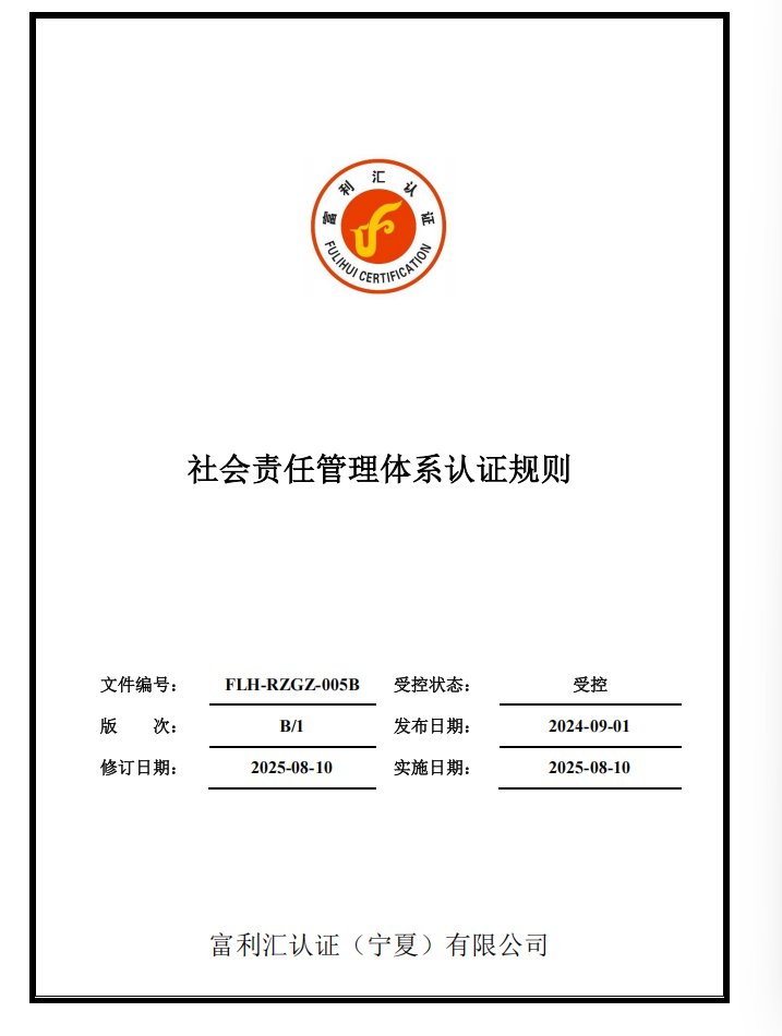 认证规则:FLH-RZGZ-005B 社会责任管理体系认证规则 点击红色字打开查看(全文)