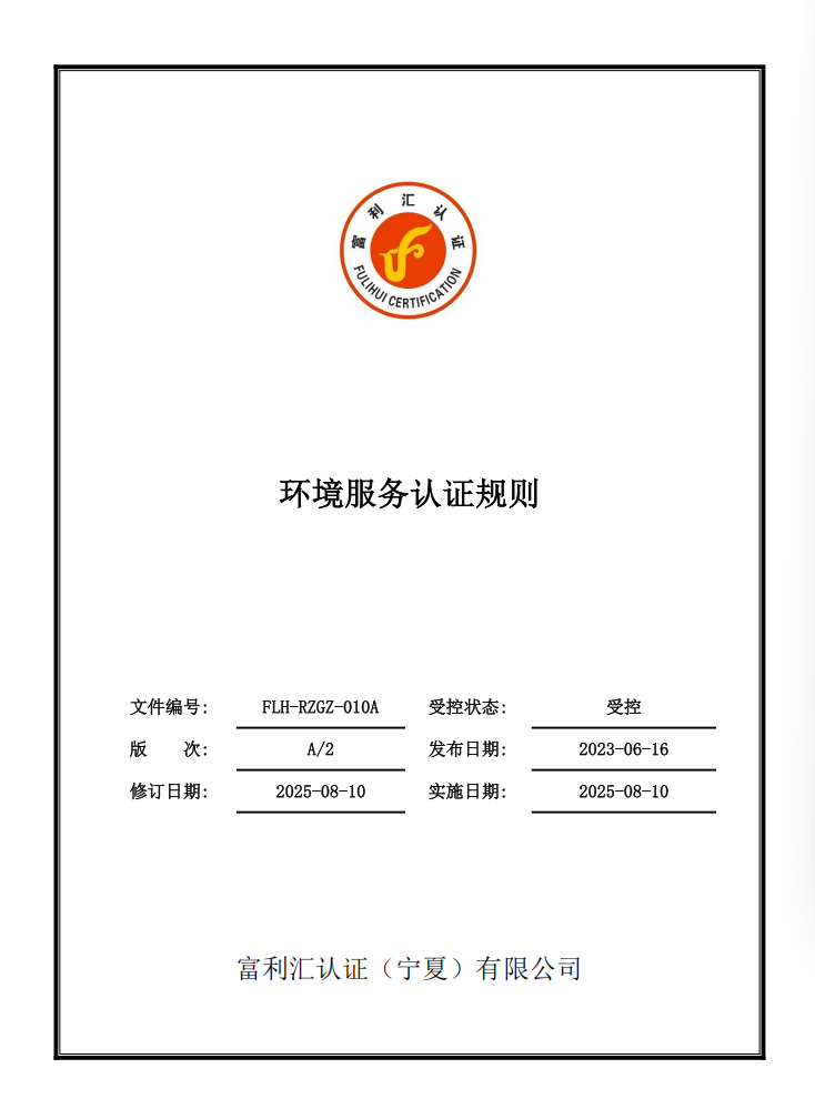 认证规则:FLH-RZGZ-010A 环境服务认证规则 点击红色字打开查看 (全文)