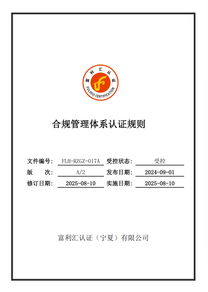 认证规则:FLH-RZGZ-017A合规管理体系认证规则 点击红色字体打开查看(全文)